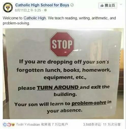 把责任还局局岩给孩子其实也被很多教育人士认可。美国有一个中学校长给家长们的信,曾在Facebook上广为流传。
