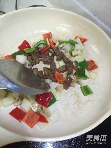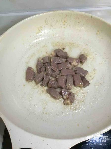 9. 加入牛肉粒迅速翻炒均匀 炒香