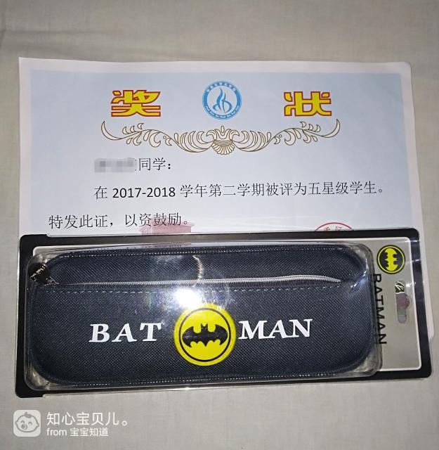 闺女把奖品和奖状拿出来递给我,我问她这次的奖状又是布基什么奖励。她就简单的说了一句是五星级学生的奖状和奖品,唉!这孩子得了奖状怎么还没我开心呢!我看了一下闺女今天的奖品,哦!原来是一个黑色的笔袋。