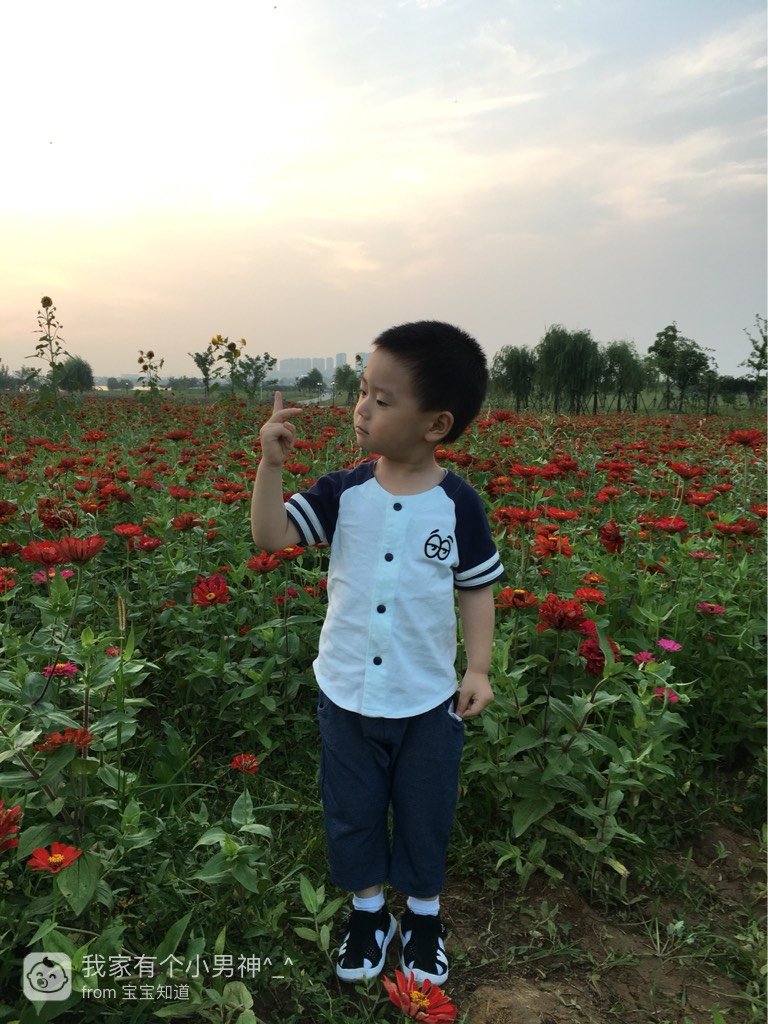 我说给儿子在花海里拍照,他第一次这么乖乖地站在那里,还伸出手指要摆出耶的姿势。再次之前他并不会这样的手势,这是第一次尝试,他很认真的去控制自己的手指,歪着头去看自己的手指是否正确,那模样真的可爱的紧,我赶紧拿起手机记录下来,效果不错,唯有文字与相片不会辜负此刻的美好。