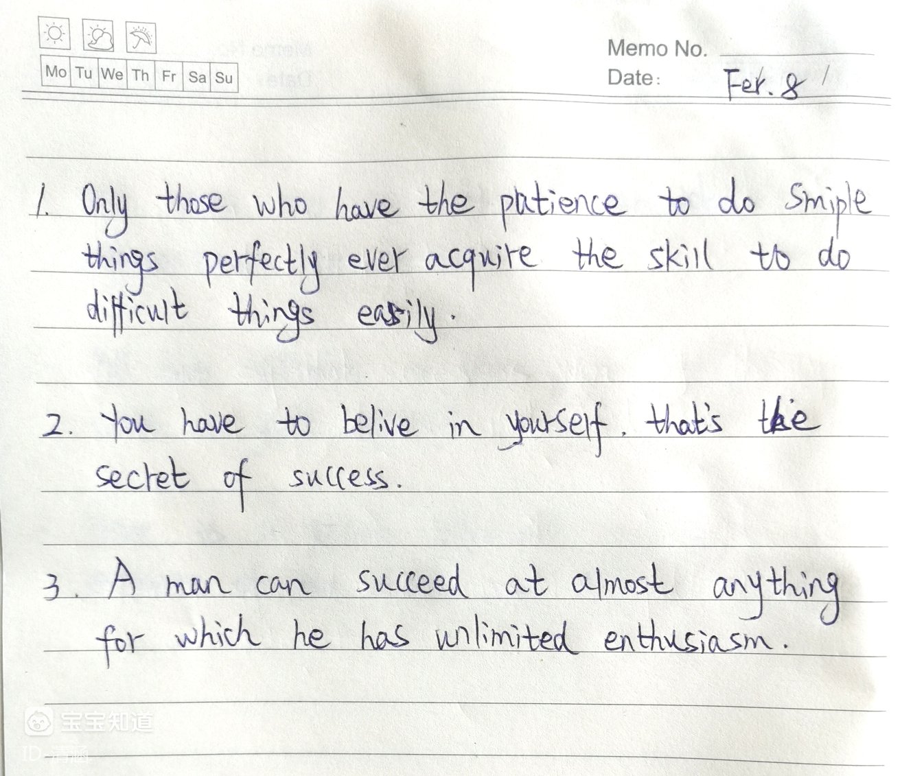 1、Only those who have the patience to do simple things perfectly ever acquire the skill to do difficult things easily.