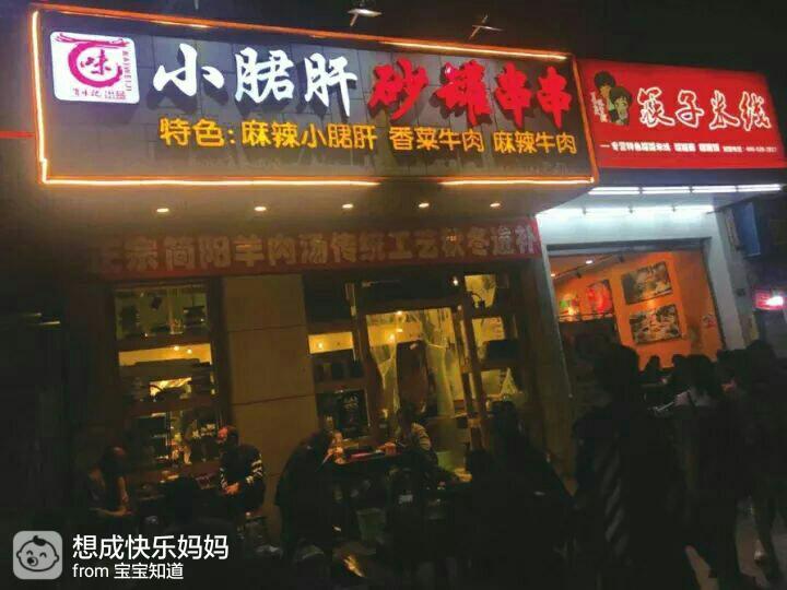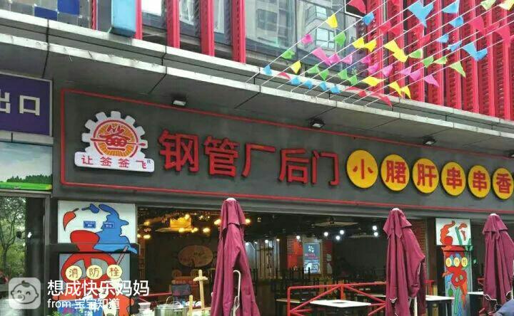 带炼钢工人头像商标的、带砂锅串串商标的,还有各种其他商标的加盟品牌……钢管厂小月郡肝串串香店家多得让你看花眼。