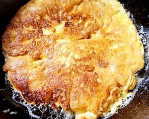哄干一面,翻面,注意翻面不要把鸡蛋弄散了