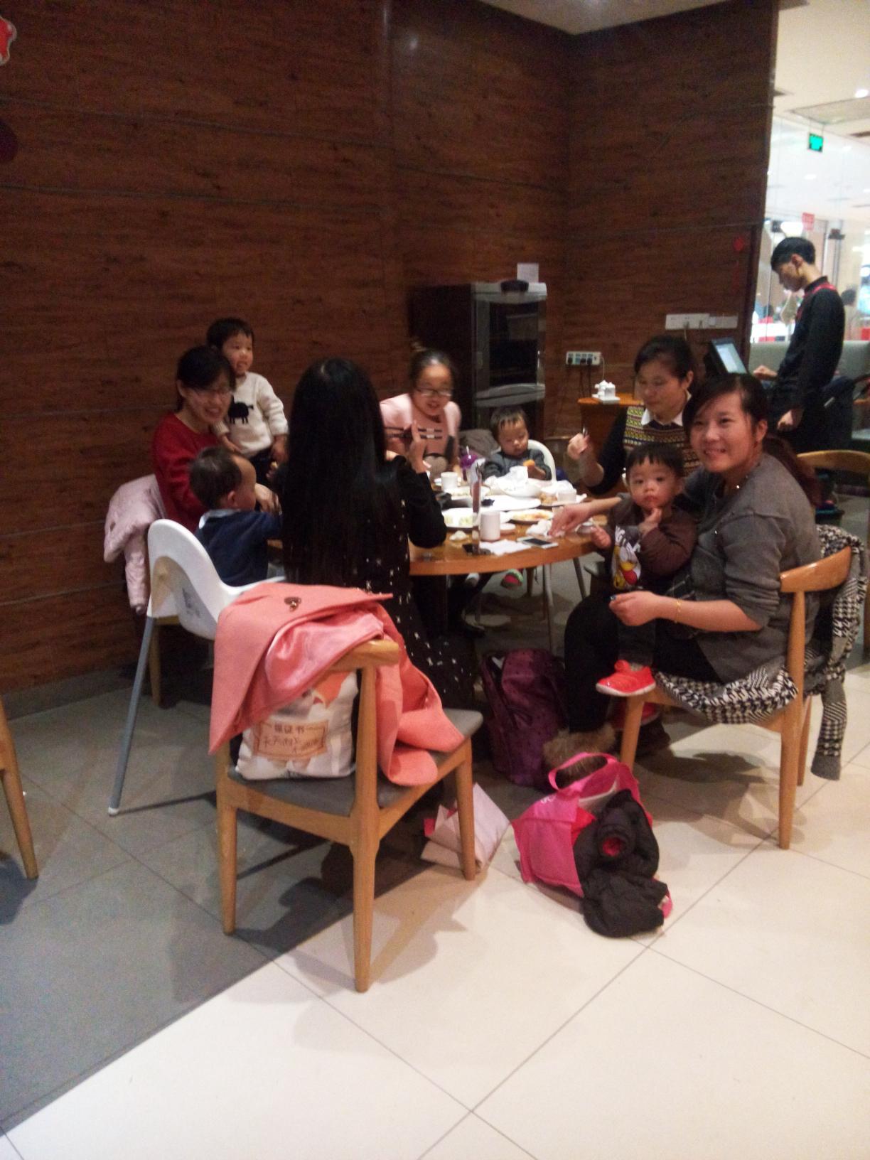 就和小乖妈赶紧的去点餐区点菜了,来回看了好几遍菜样都没有找到适合甜甜和小乖的食物,于是我们就和超人们告别,去给甜甜找点粥喝