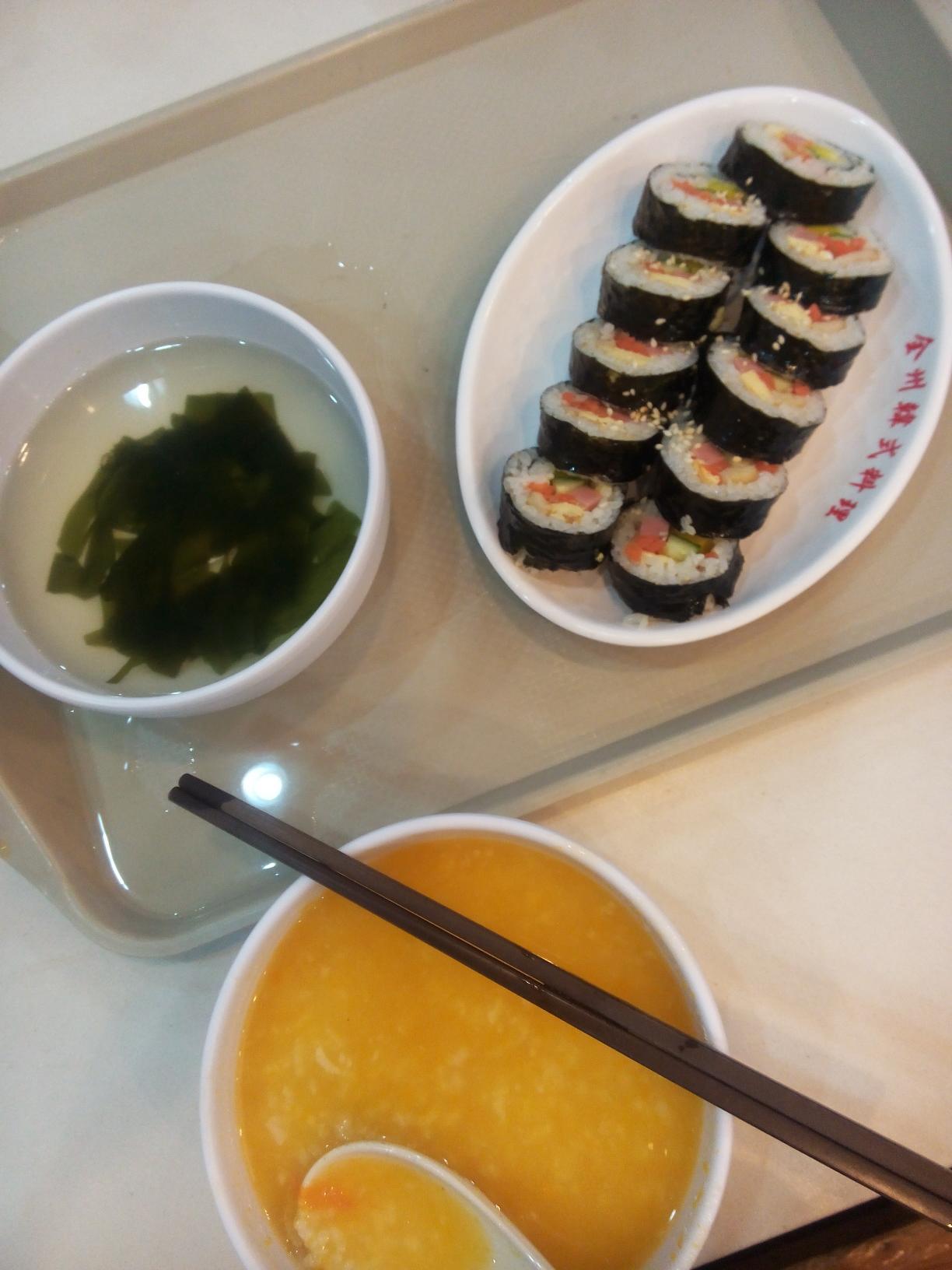 瞧瞧我们点的餐,吃的喝的都有了,这时候小乖睡着了,所以这顿餐小乖没落着吃,甜甜倒是喝了不少南瓜粥。