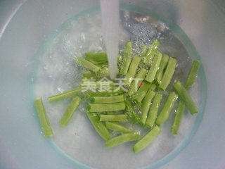 2 将梅豆摘洗干净,捞出待用。