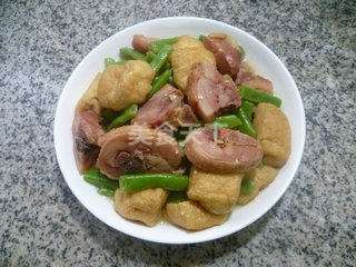 undefined梅豆 105克 油豆腐 80克 腊鸡腿 230克 生抽 适量 盐 适量 鸡精 适量