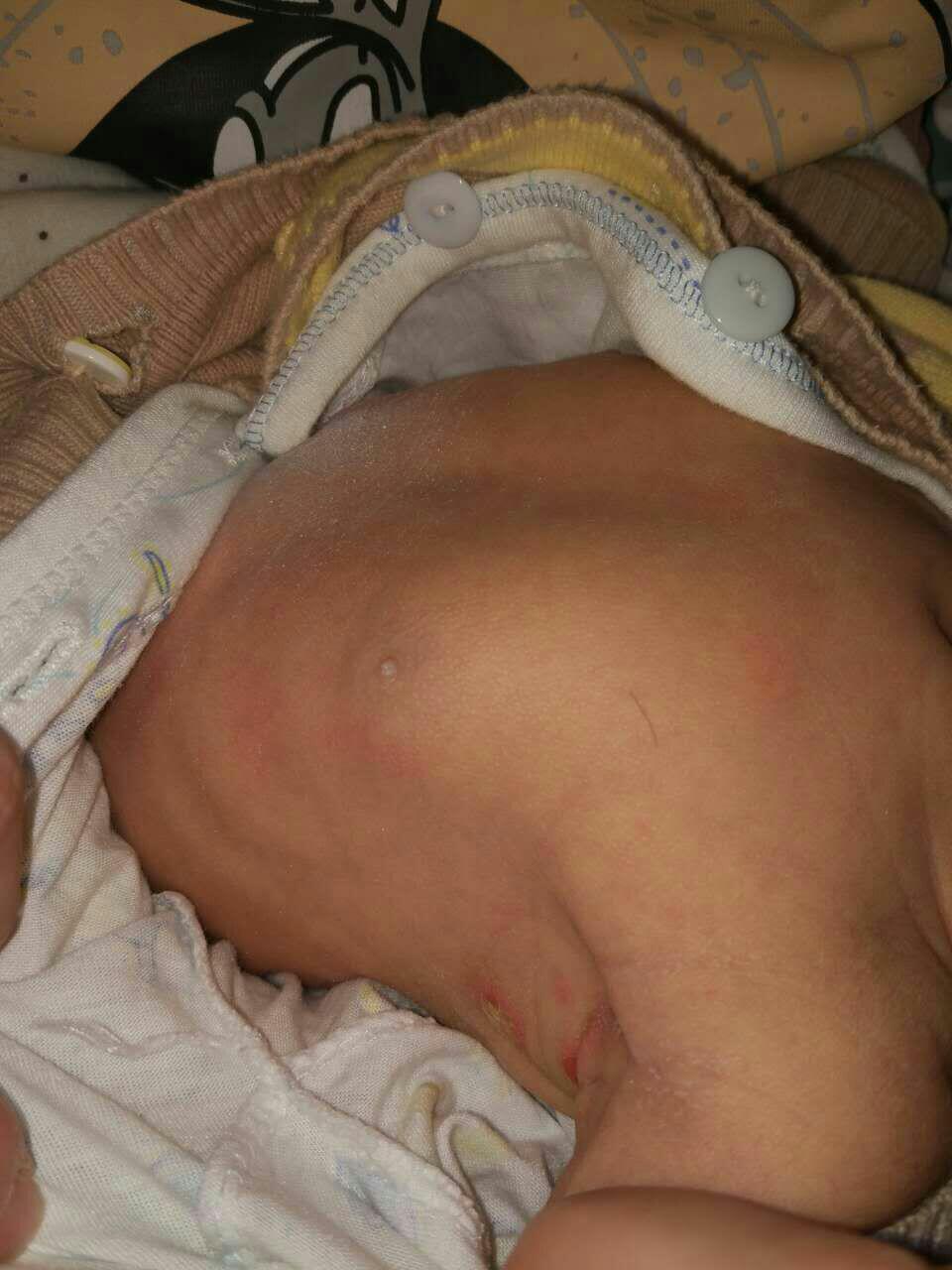 昨天出院,在医院这几天宝宝都是在洗婴室洗澡,没找到昨天下午出院,今天准备帮宝宝洗澡,才发现孩子腋窝下既然有一慕斯片很大的发脓现象,心疼死家里人了。这医院医生不但明着跟孕妇家属收受红包近最逝,还这样不负责任没医德!我真典降的很气氛,不知道该找谁说理。