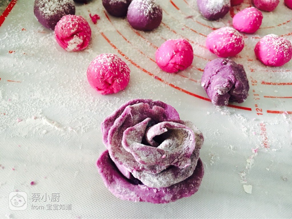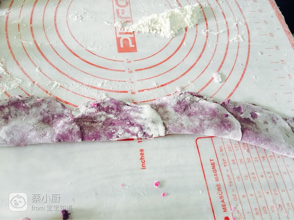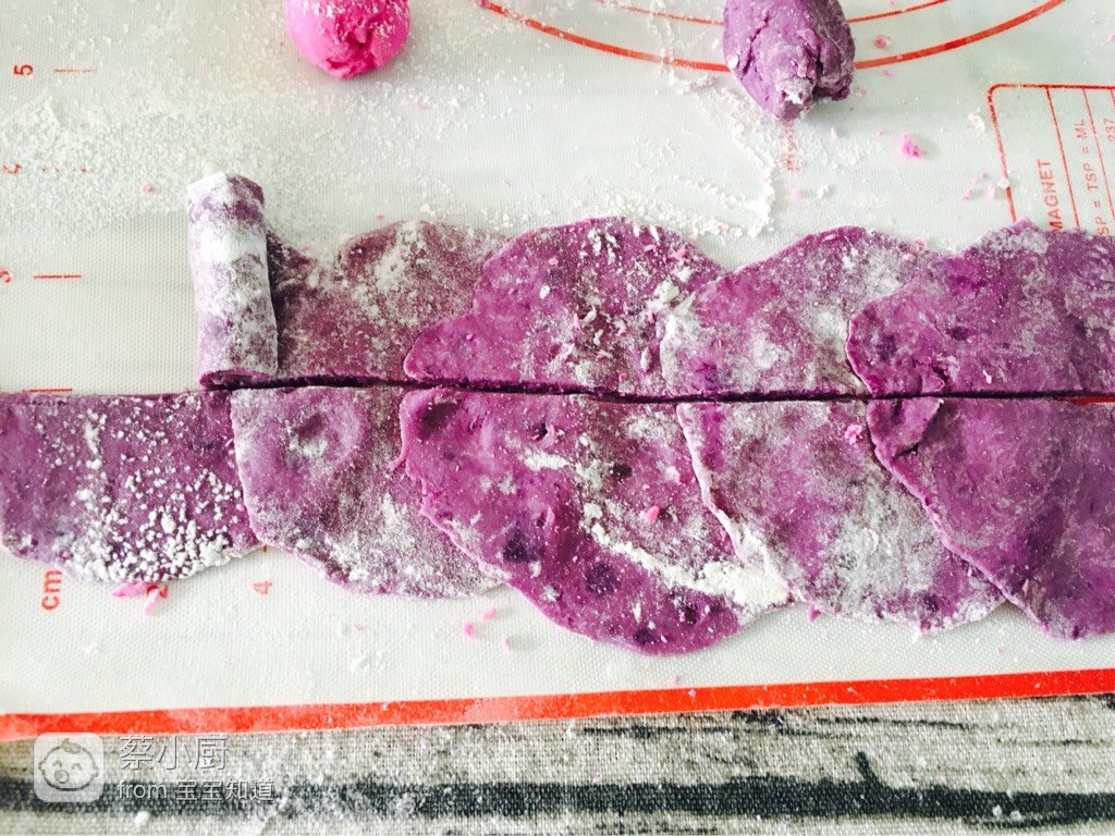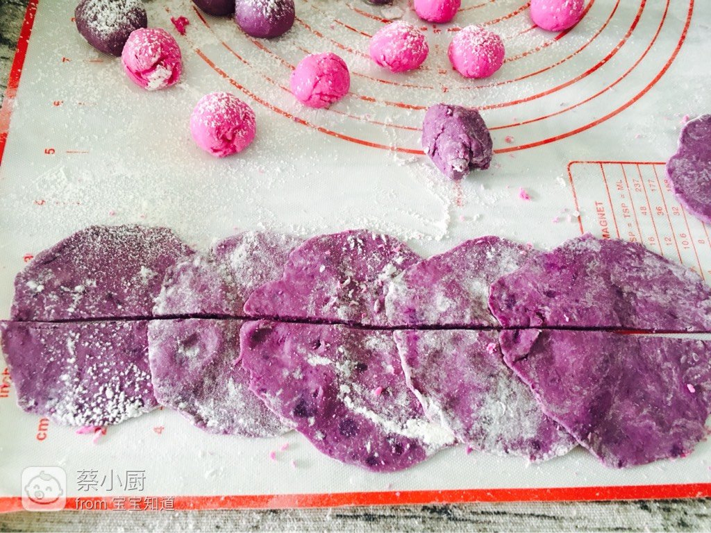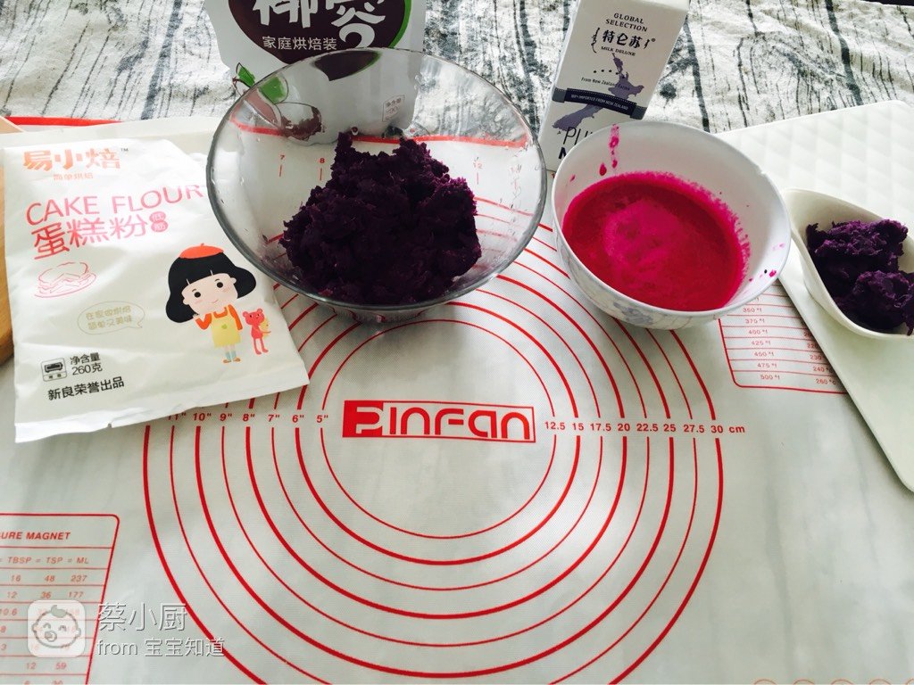 紫薯泥、低筋面粉、纯牛奶、红心火龙果汁降破且