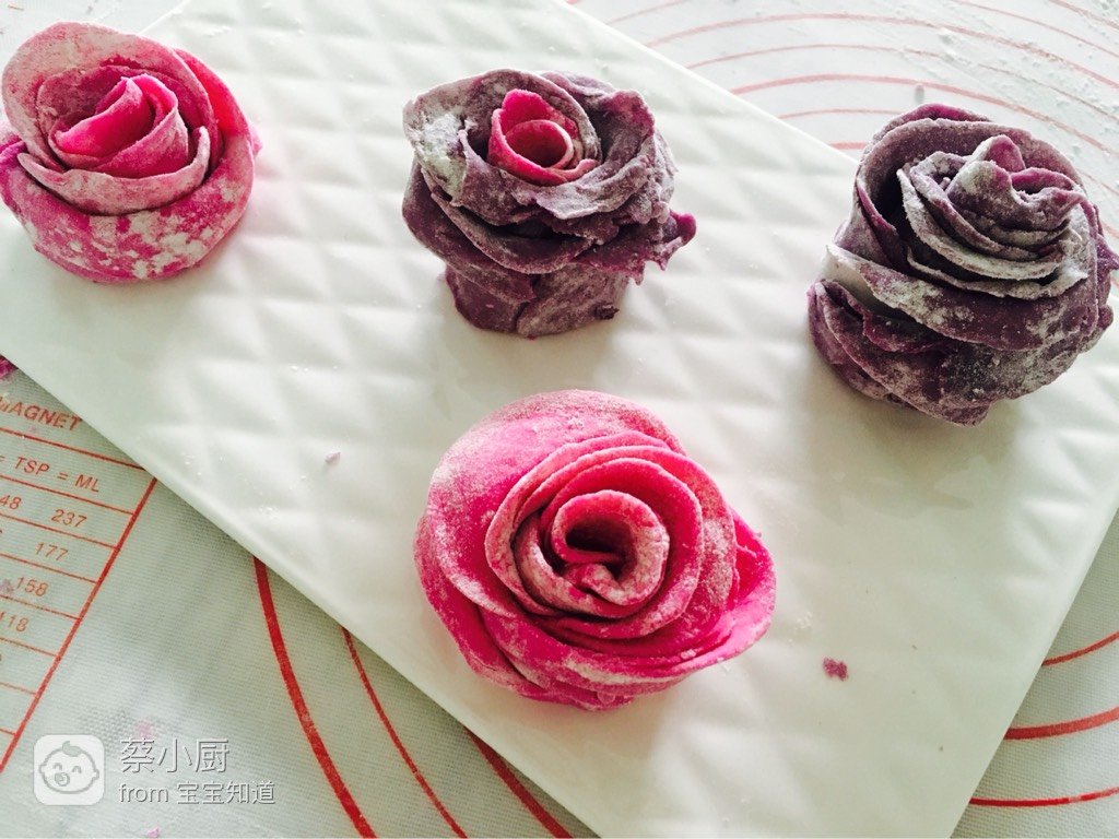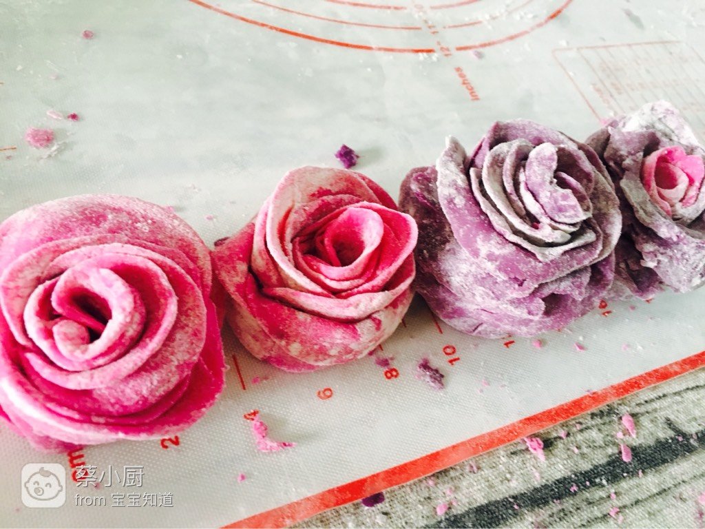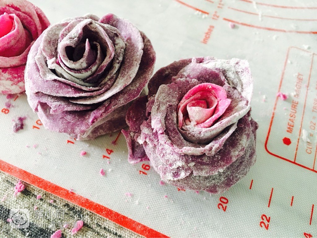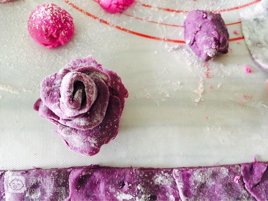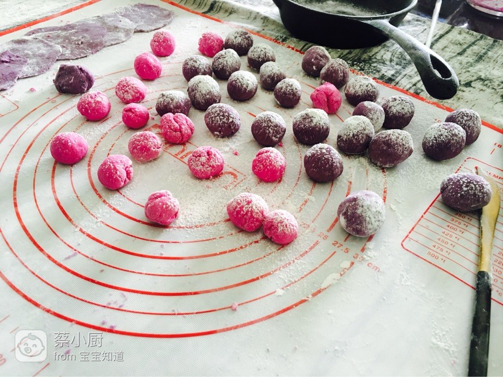 紫薯泥、低筋面粉、纯牛奶、红心火龙果汁降破且