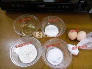 1 提前准备好所有材料,细砂糖分开一个30克一个10克
