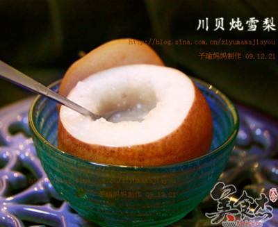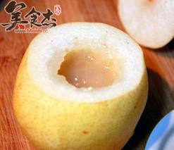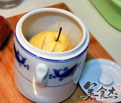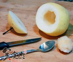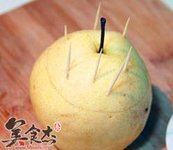 5. 将粉末装到梨肚子里,再加冰糖和水即可