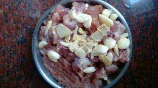 3 把腌制好的排骨撒上蒜头和姜!