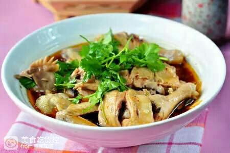 7、鸡肉斩块摆盘。淋殖吊上步骤7中的料汁。