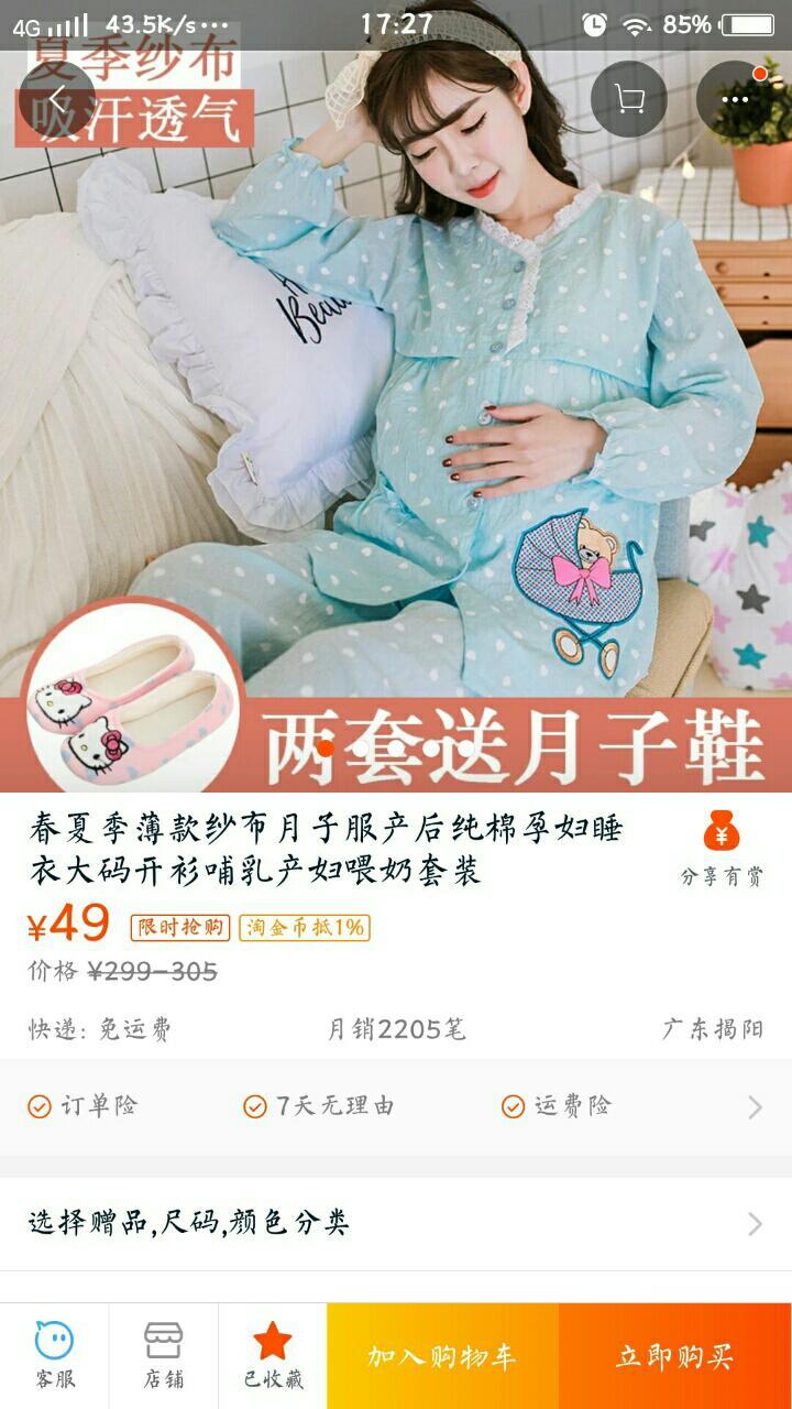 宝宝8岁7个月24天 LV.8平时穿的睡衣就可以了,没必要买月子服,宽松还得劲,做完月子就买新的了