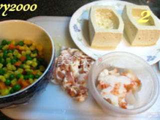 5 再将以上材料放入已蒸好的豆豆腐里。将剩下的材料做炒饭。