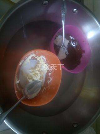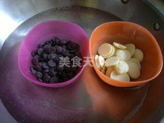 6 在剩余的黑巧克力里加入一些牛奶再稀释些(白巧克力就不用加了)