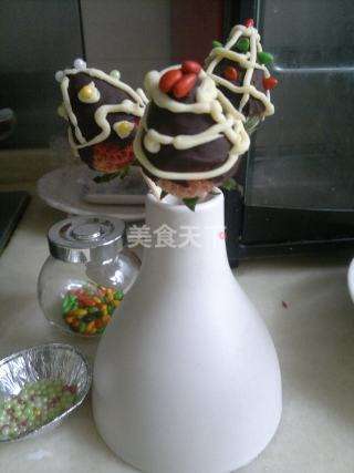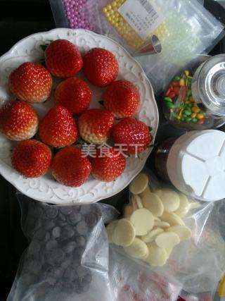 8 依次将草莓按着自己喜好来装饰了(现在天冷,巧克力干的很快,可以做几个装饰几个)