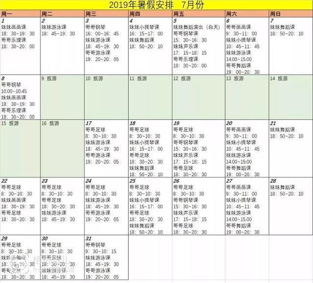 导读:现在,各个学校已经陆陆续续开始放暑假了。想起以前的孩子,从开学就开始数着日子盼着暑假,觉得放假就可以好好玩,好好放松了。可是现在暑假对于很多孩子来说,那只是魔鬼训练的开始……很多人还不信,那就一起来看看这位二胎妈妈晒出的两个孩子的暑假日程吧,这可是让很多网友看完直呼避孕,不敢生孩子了呢。