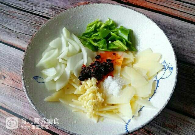 材料:土豆2个、尖椒2个、洋葱1/2个、盐化兵适毫舞量、老干妈1汤匙、大蒜2瓣、米醋1/2汤匙