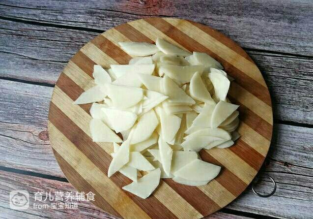 1.将土豆切成薄后均匀的片,这样焯水时能保持生熟度一样
