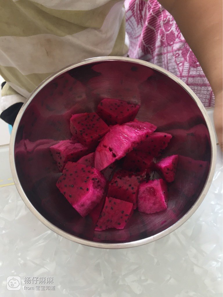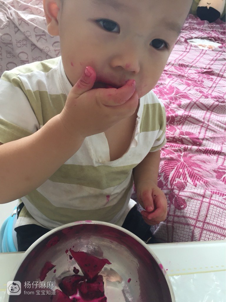 其实我是第一次买红心火龙果他纪沃吃的,之前厉柴之熬的黑米粥他看着黑色的就嫌弃的不吃,我怕这红心火龙果他也不吃,没想到我的担心是多余的,他一点都没嫌弃,半个火龙果一会儿都吃完了,开始还用叉子,后来嫌叉子碍事直接下手了!