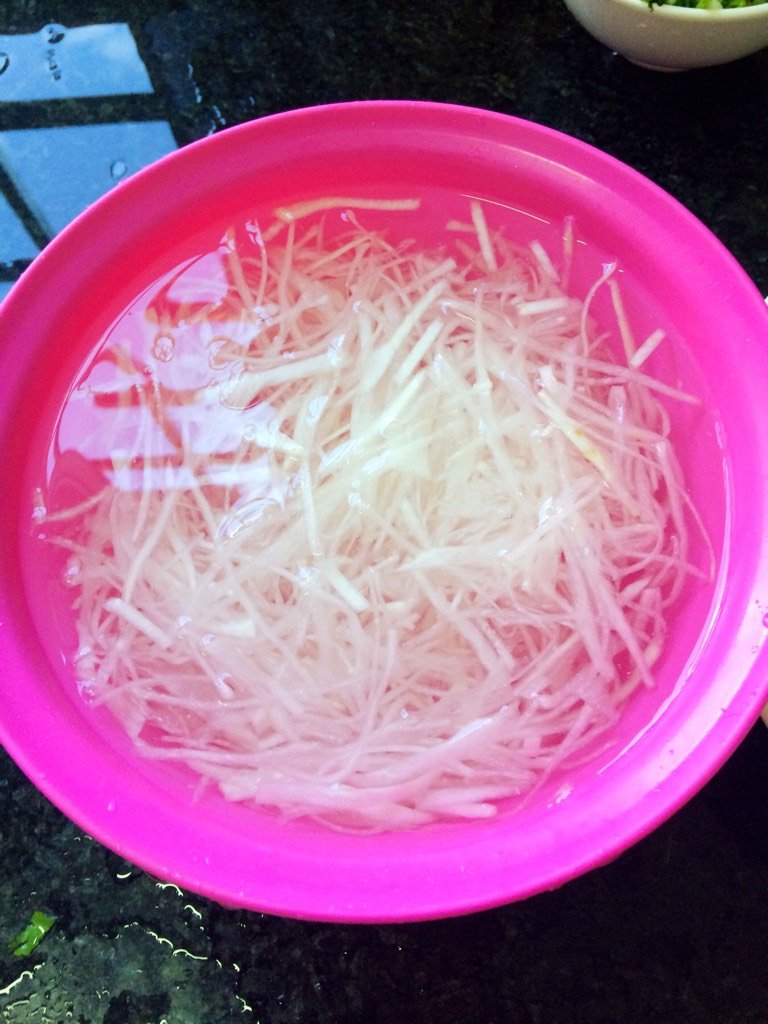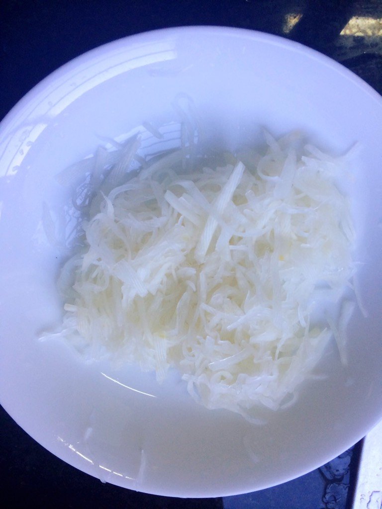 把萝卜丝泡水,加入两勺食盐!