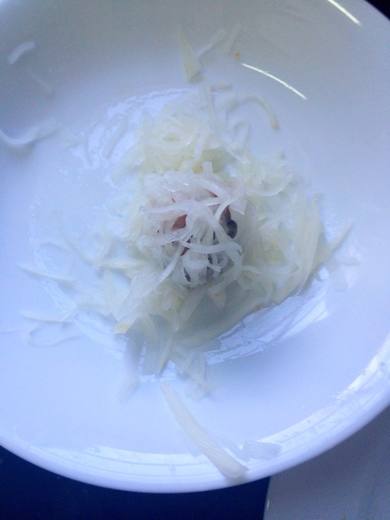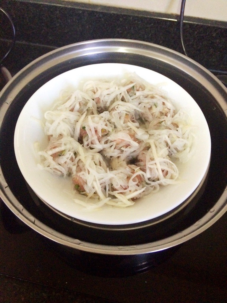 然后肉丸在萝卜丝上滚上萝卜丝!