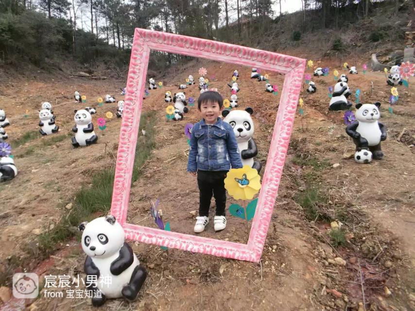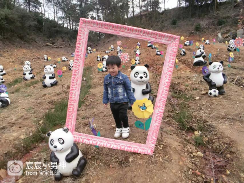 宸宸看到这些小熊猫的时候特别开心,虽然土地光秃秃的,但是相框的造型让他感觉很新奇,笑的格外灿烂