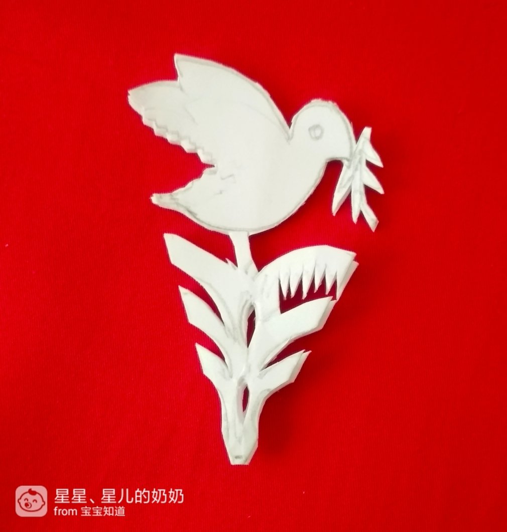今天这个手工剪纸的主题是展翅的鸽子和橄榄枝,它们象征着和平与希望。希望我们的世界永远充满和平,希望人们的生活永远充满幸福。