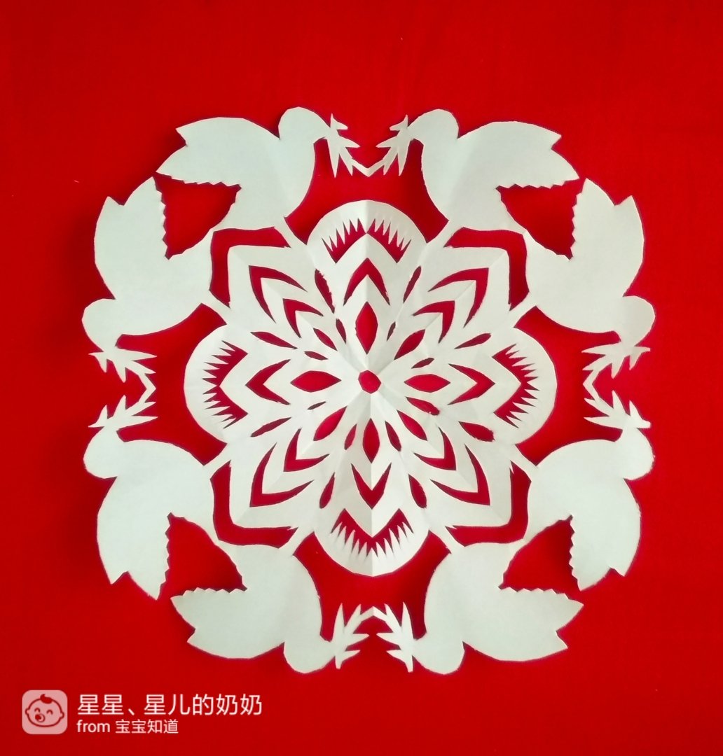 7:把剪好的图形轻轻打开,剪纸部分就完成了。等着用彩铅涂下颜色,成品图就耀宰完工了。