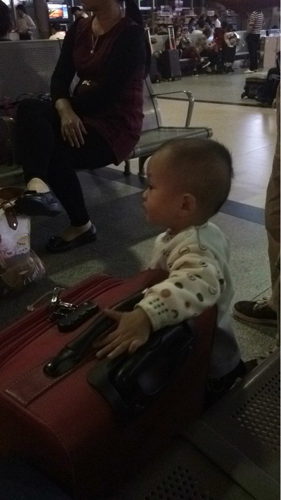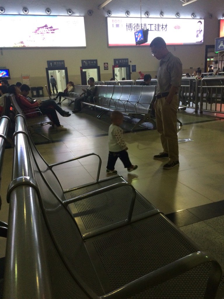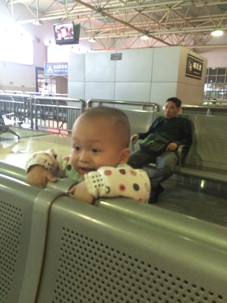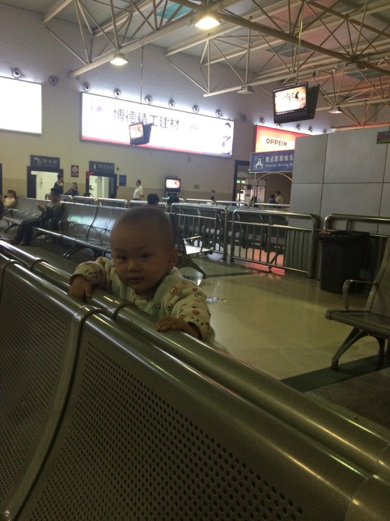 到了火车站在候车厅的时候,又不听使唤了,到处瞎逛,我实在是头晕的厉害受不了了,只能让他爸跟着他了,实在是太兴奋了!一下子都不消停!太累了!
