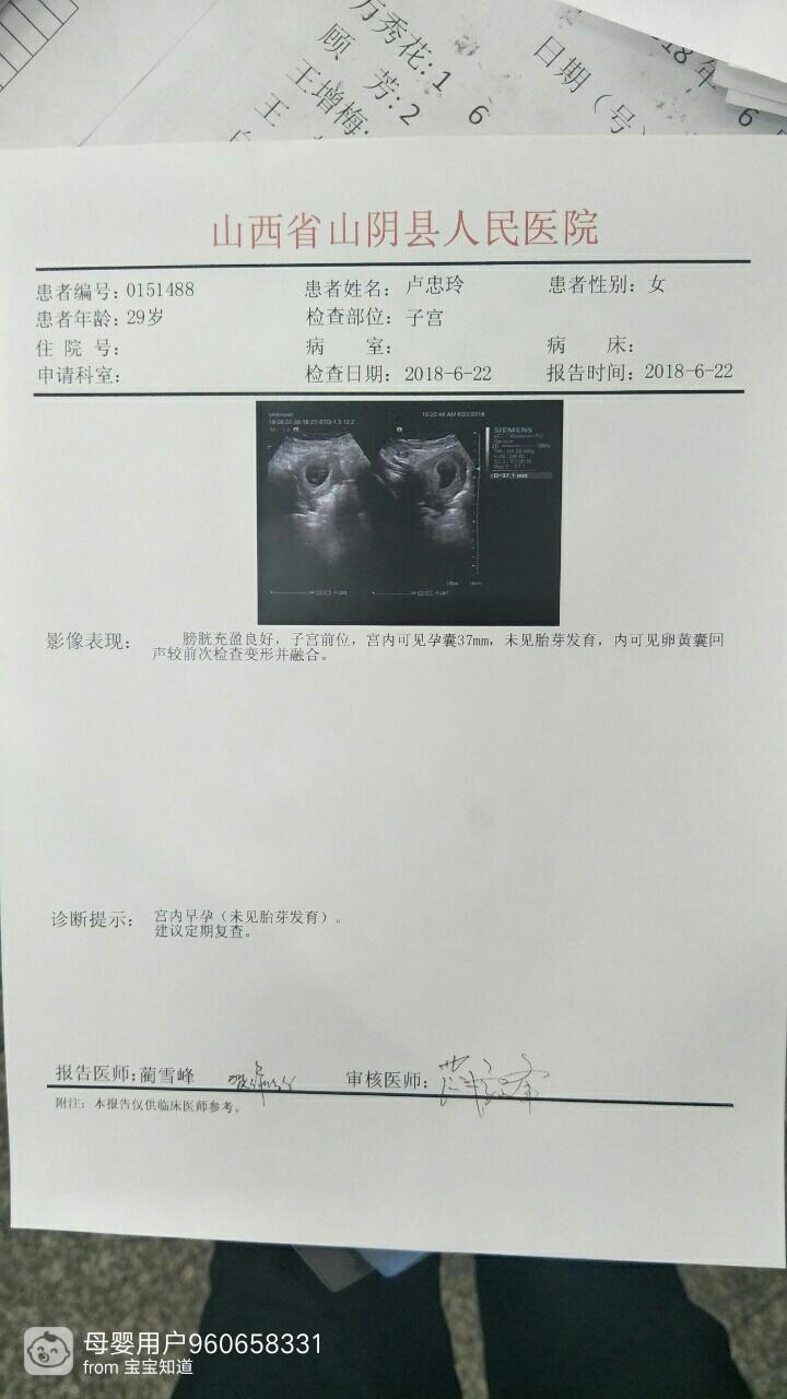 潘寅喆:两个月没胎心胎芽!情况不大好!医生可能让你准备清宫了!
