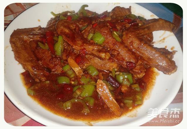3. 炒出香味后,可以加入水(水位看您的鸭翅多少而定抗且哦 水位 一比二 计算就行)水分差不多吸干后,可以先馋馋味道个鸭翅有没有煮到适合的口感,少放点麻辣鲜和鸡精即可出锅