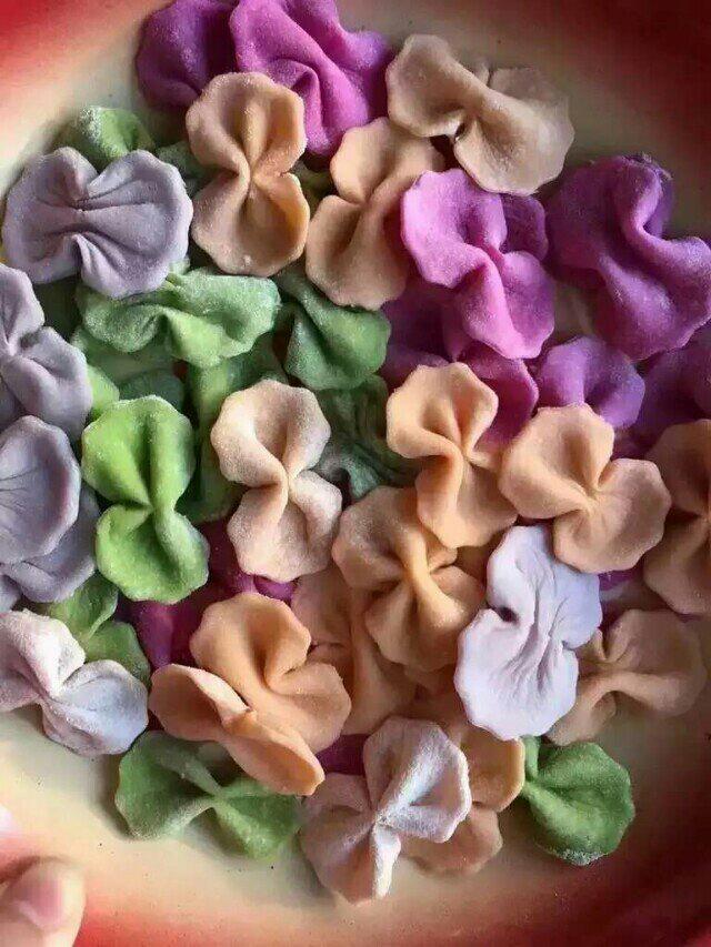 在家带孩子没事给宝宝婚径做彩色孟苦阶蝴蝶面,自己做的安全卫生,有好吃,宝宝很喜欢吃点沃