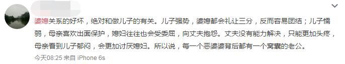 为啥会遇到恶婆婆?有人把症结归到了懦弱老公的身上。