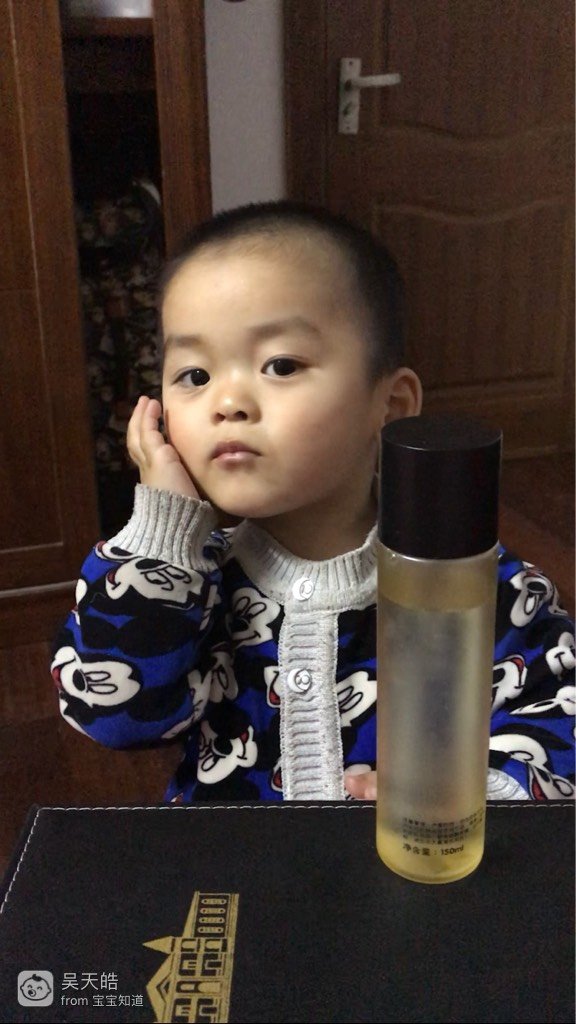 没多大卫涌会,他突然跑向墙角处,还冲我哈哈大笑,手里好似藏着什么东西,我问他是什么好东西,拿开给妈妈分享下,可他就是不肯,作罢,各玩各的吧,突然间我看见他竟然在玩弄爽肤水瓶子,幸好没有拧开,还拍拍瓶盖,在拍拍自己的笑脸,瞬间把我笑坏了,这姿势是跟我学的吗?