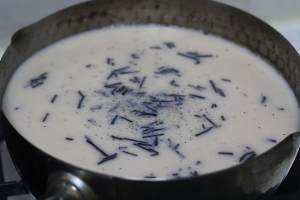 用料 undefined 准备好奶锅,放入茶叶熬制,大约5-6分钟水开,加入生姜片,茶叶颜色渐渐变深色,小火熬制5分钟键团。