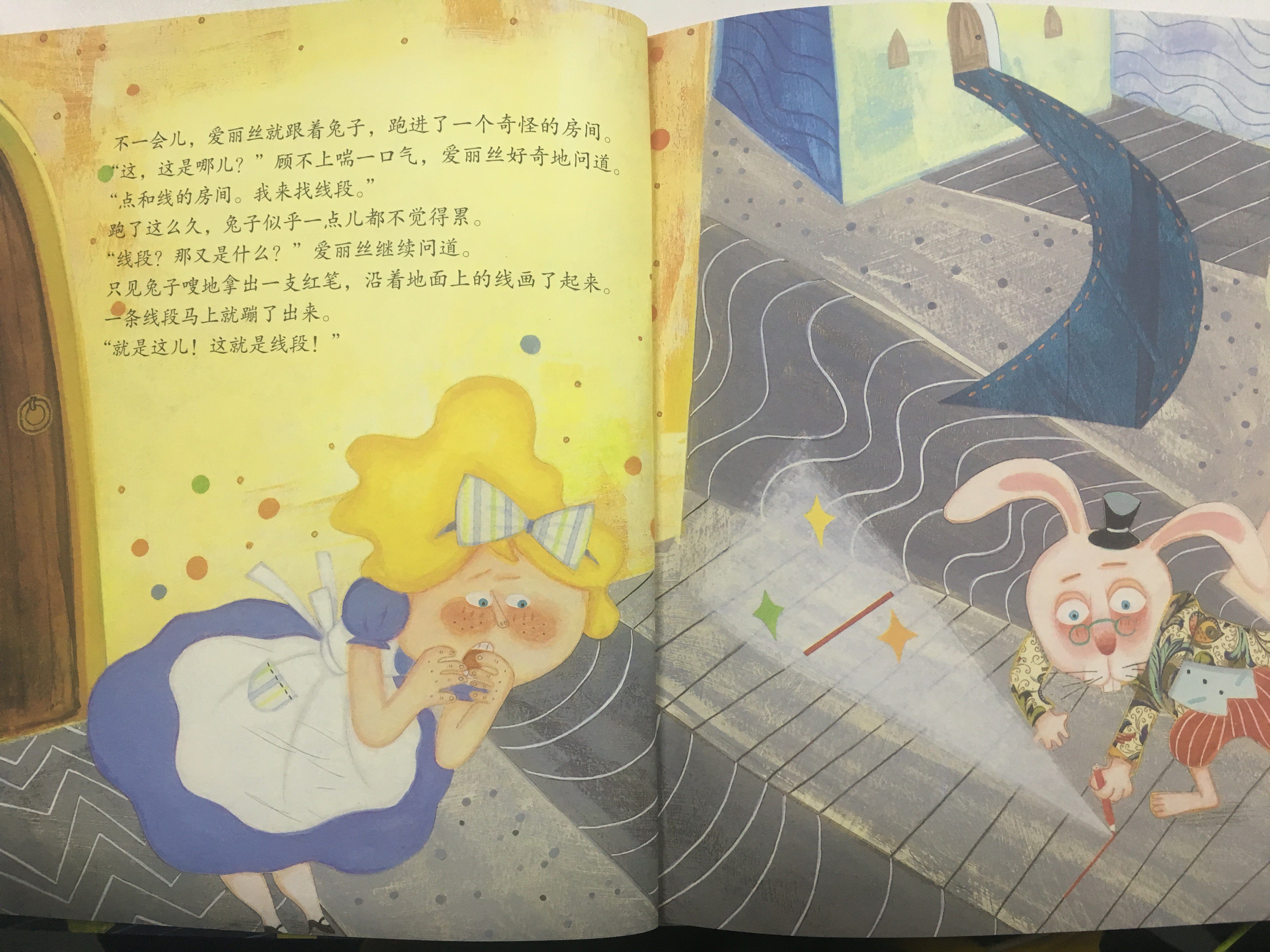 知道了什么是线和角,这就为后面爱丽丝和兔子寻找圆、三角形和正方形打下了基础。如果能收集全这三个图形兔子的任务就完成啦。