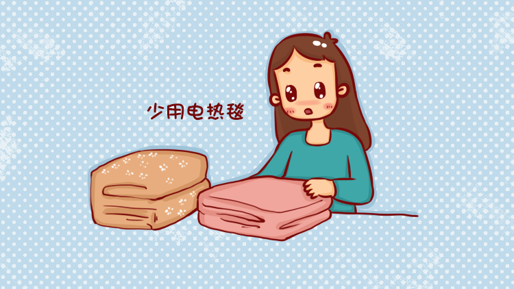 冬天取暖有三大法宝:暖气、热水袋、电热毯。电热毯不仅有辐射作用,长期使用也会引起体内水分、盐分流失,造成皮肤失水过多而出现口干舌燥的症状。