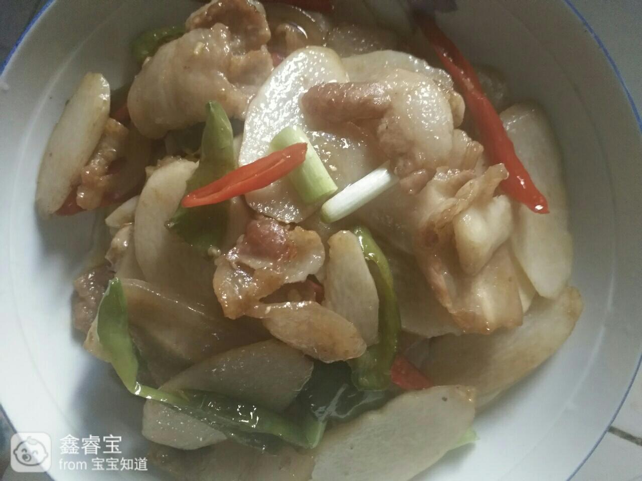 锅里少许油,把切好的肉片放进去炒,放少许料酒,炒至变色,泳劣倒入辣椒和葱头,翻炒1分钟,再倒入山药片,快速炒匀,然后加入白糖一点点调味,醋一点点,加少许水,闷一分钟,然后放点老抽,盐,就可以起锅了。