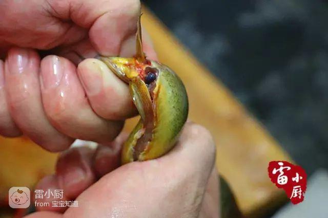 3、用剪刀剪开泥鳅的肚子,将胆、肠等内脏取出,清洗干净,胆一定要取出,不然吃到会很苦哦。