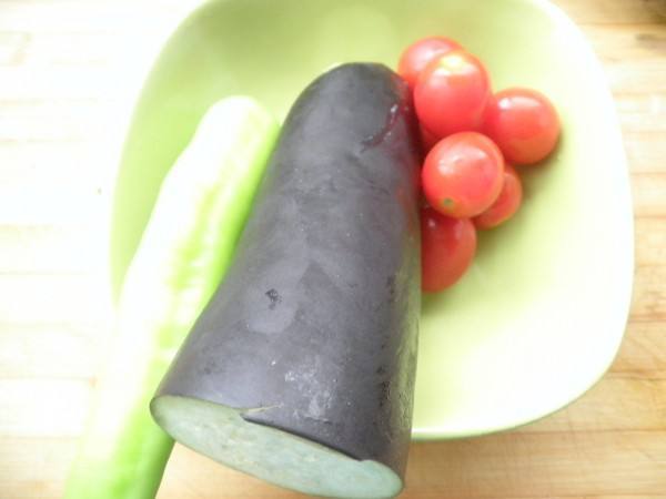 西红柿青椒炒茄子的做法 1. 所需原料,茄子,辣椒,西红柿
