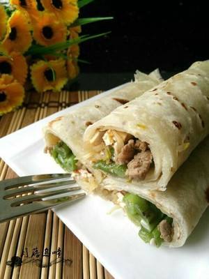 将自己喜欢的菜或蒜泥放在饼上卷起,究凡渐就可以开吃