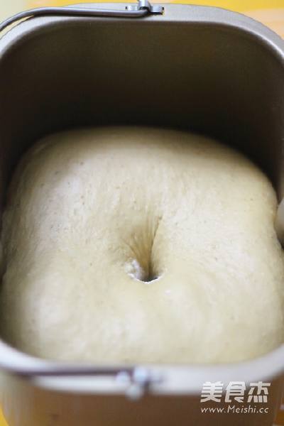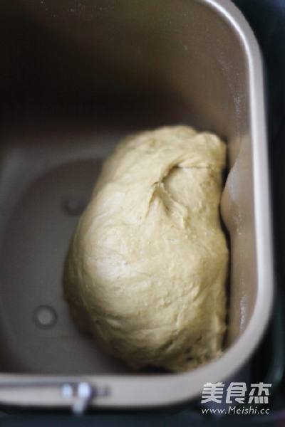3. 启动面包揉面程序,第一次揉面结束后,加入室温软化的黄油继续启动一次揉面程序,揉面结束后常温发酵