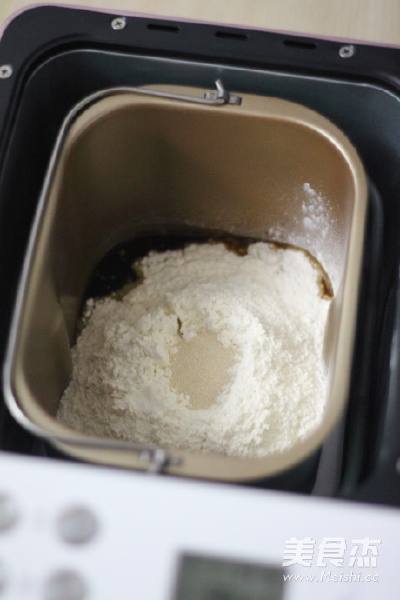 2. 将除黄油和蔓越莓以外的材料按先液体后粉状的顺序依次放面包机桶中