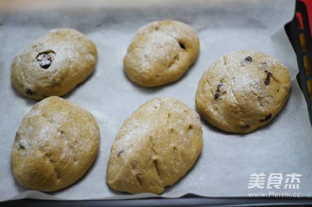 8. 待发酵完成后,用刀随意划几下,筛入少许面粉在表面,放入170度预热好烤箱中层烤15分钟左右