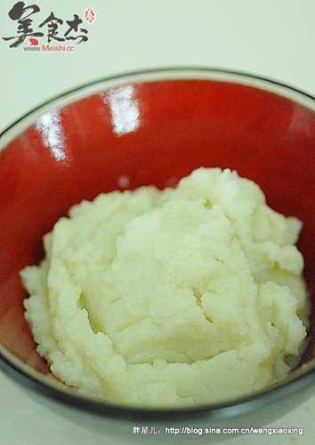 水泥的做法 1. 土豆蒸熟,去不去皮随你,不过最后是得无皮只去土豆瓤按压成泥,一定要用趁热按压才能做出细腻的土豆泥,用勺子按压时一定要耐心仔细,一点疙瘩也不能有