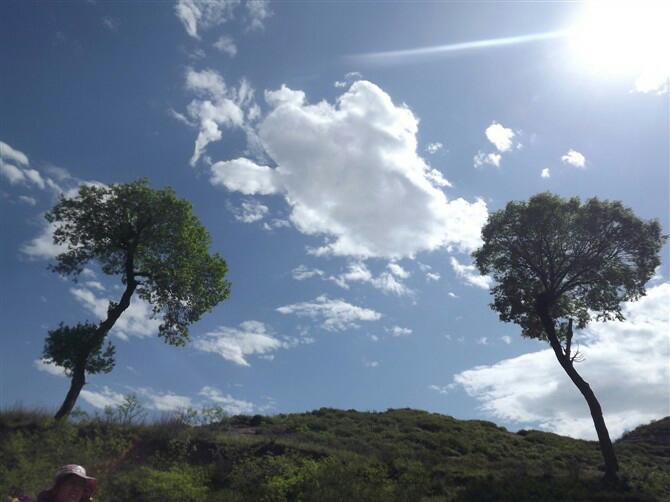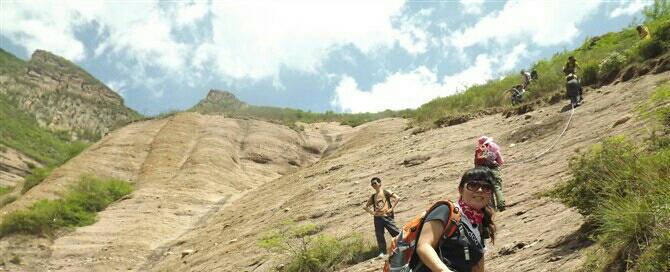 赤壁其山长约40里,而40里长的山均全为绝壁,高达数百米,走过绝壁胆量都大了,走过荆棘的山路,手脚称抹都被刺划伤了,上到山顶,那一片蓝天白云,美不胜收,所有路途中的辛苦都化成灿烂的笑容。