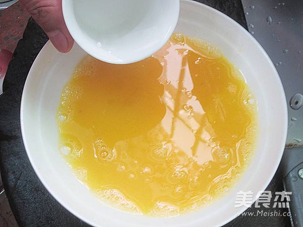 5. 鸡蛋撒后,加入温开水搅拌均均